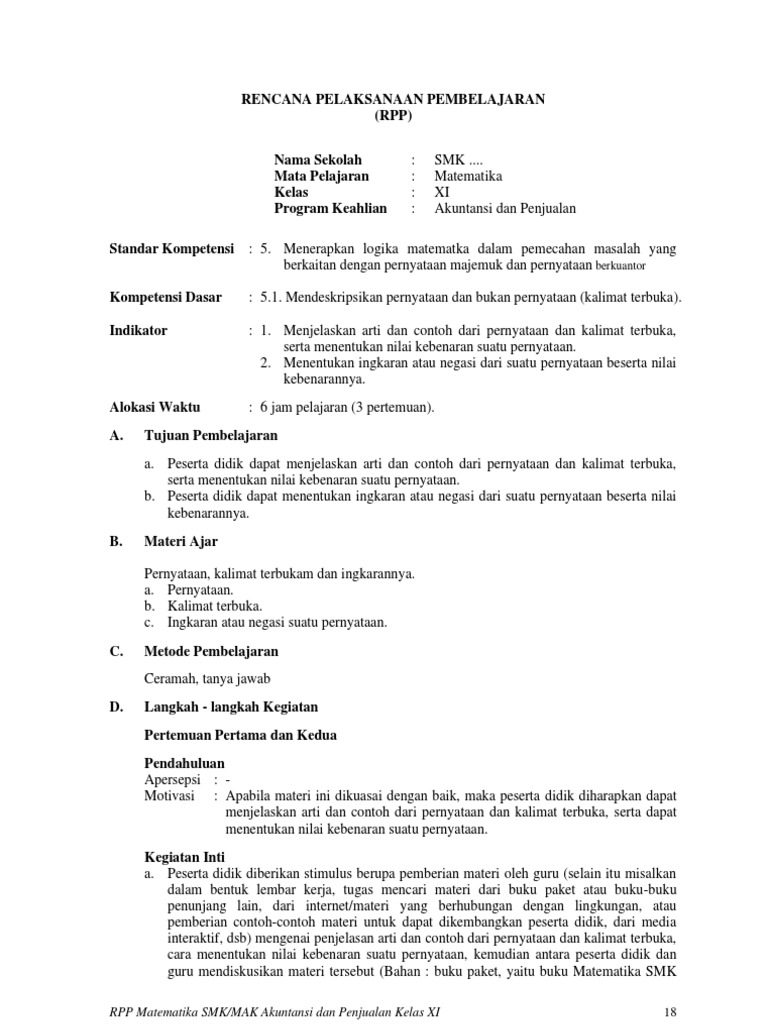 Download Rpp Mata Pelajaran Matematika Smk Kelas X Xi Xii Kurikulum 2013 Revisi 2017 2018 Semester 1 Dan 2 Jurusan Teknik Non Teknik Rpp 1 Lembar Download Rpp Smk Kurikulum 2013 Revisi 2017 2018 2019 2020