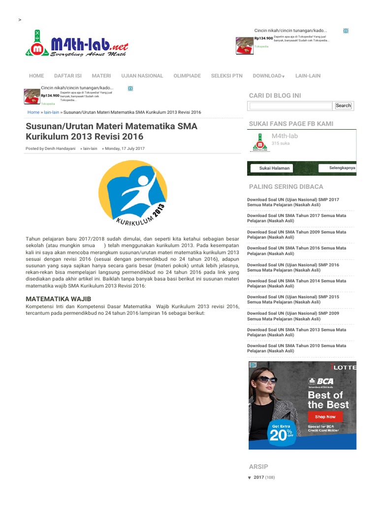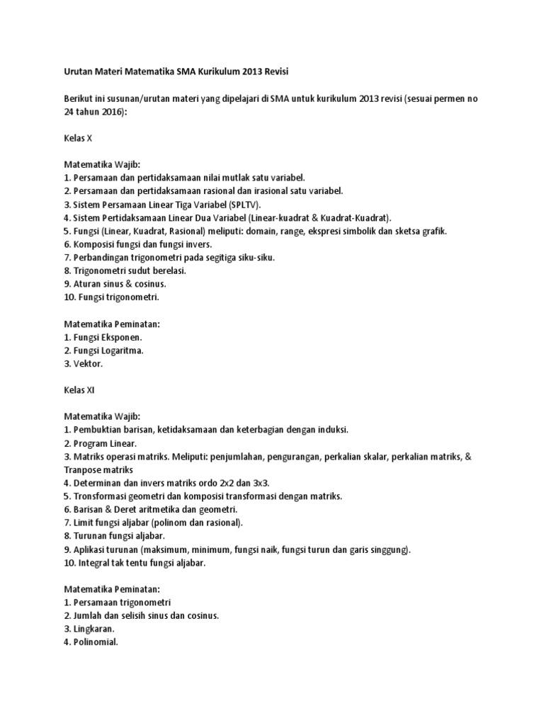 Materi Pokok Matematika Sma Kurikulum 2013 Revisi Catatan Matematika