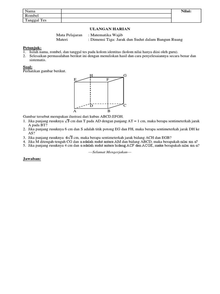 Konsep Jarak Pada Dimensi Tiga Atau Bangun Ruang Konsep Matematika Koma