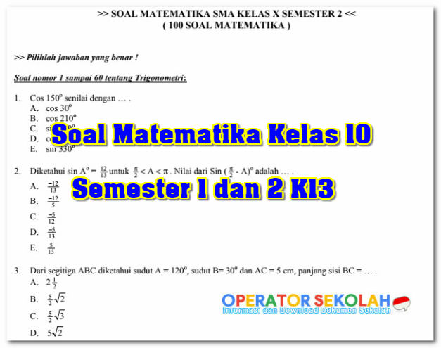 Materi Pembelajaran Matematika Kelas X Pada Kurikulum 2013 Pagar Alam Dot Com