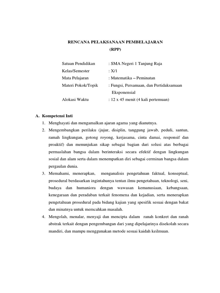 Matematika Peminatan Kelas X Persamaan Dan Pertidaksamaan Eksponen K13 A Persamaan Eksponen Berbasis Konstanta Pdf Free Download