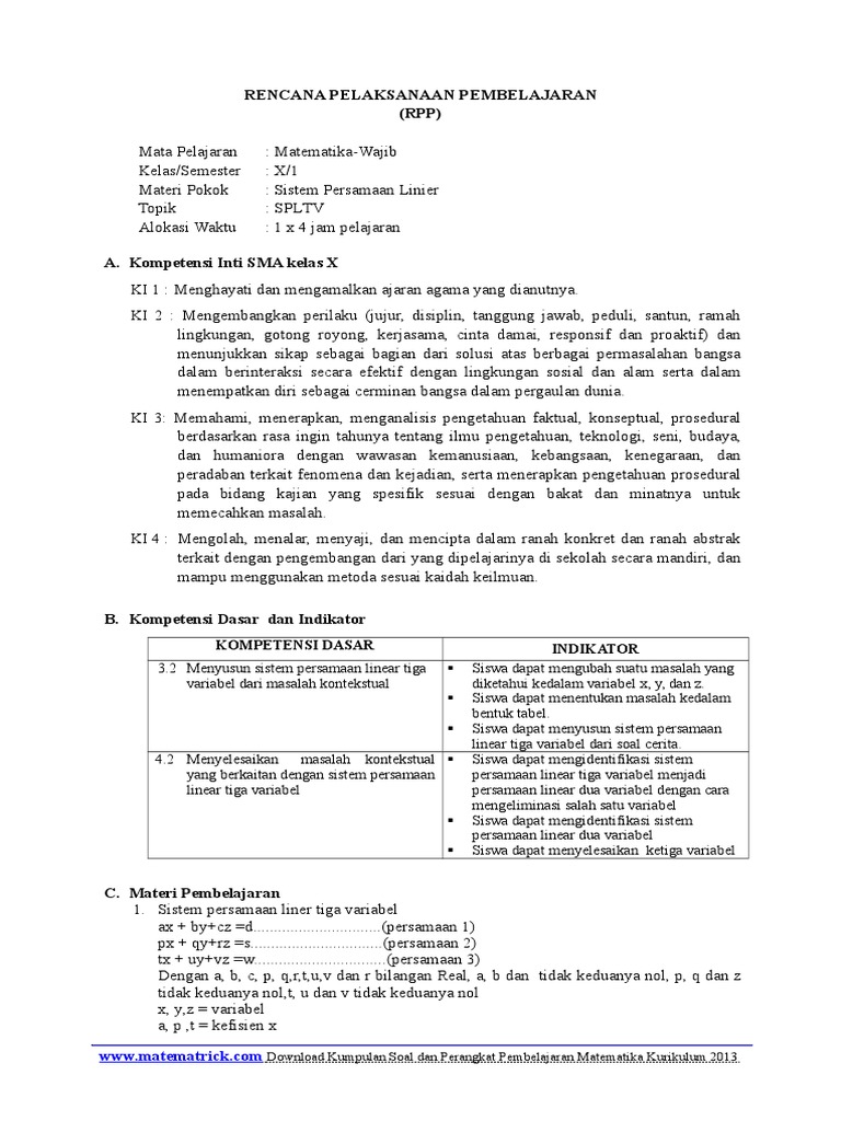 Pdf Rencana Pelaksanaan Pembelajaran Rpp Spldv Cut Rita Zahara Academia Edu