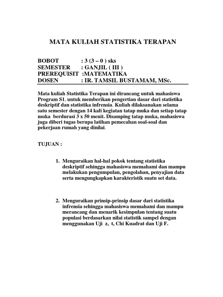 Stk211 Metode Statistika Statistical Methods Dr Agus M Soleh S Si Mt
