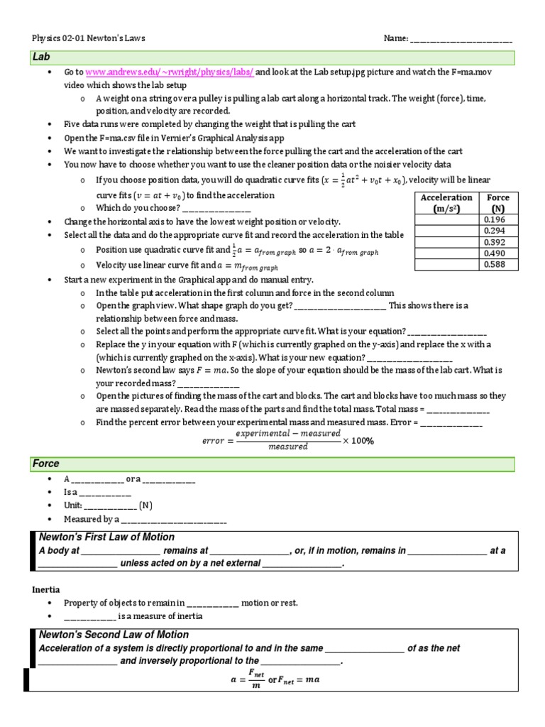 Physics 02 01 Newton S Laws Lab Force Newton S Laws Of Motion