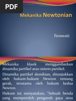 Mekanika Newtonian Persamaan Gerak Newton Hukum 1 Newton System Acuan Inersia Diam Pdf Free Download