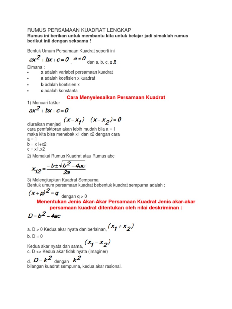 Cara Mencari Akar Akar Persamaan Kuadrat Pemfaktoran Kuadrat Sempurna Rumus Abc Contoh Soal Dan Pembahasannya Sekolah Matematika Sains Sms