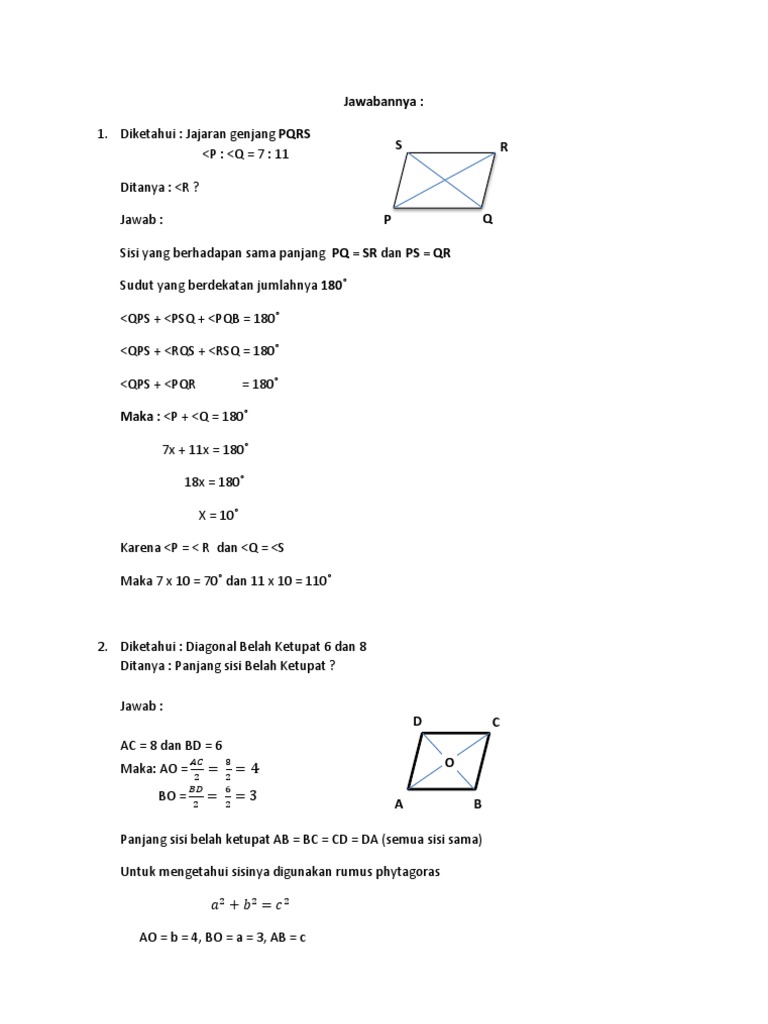 Luas Belah Ketupat Pqrs Adalah 216 Cm Jika Panjang Diagonal Pr 18cm Berapakah A Panjang Brainly Co Id
