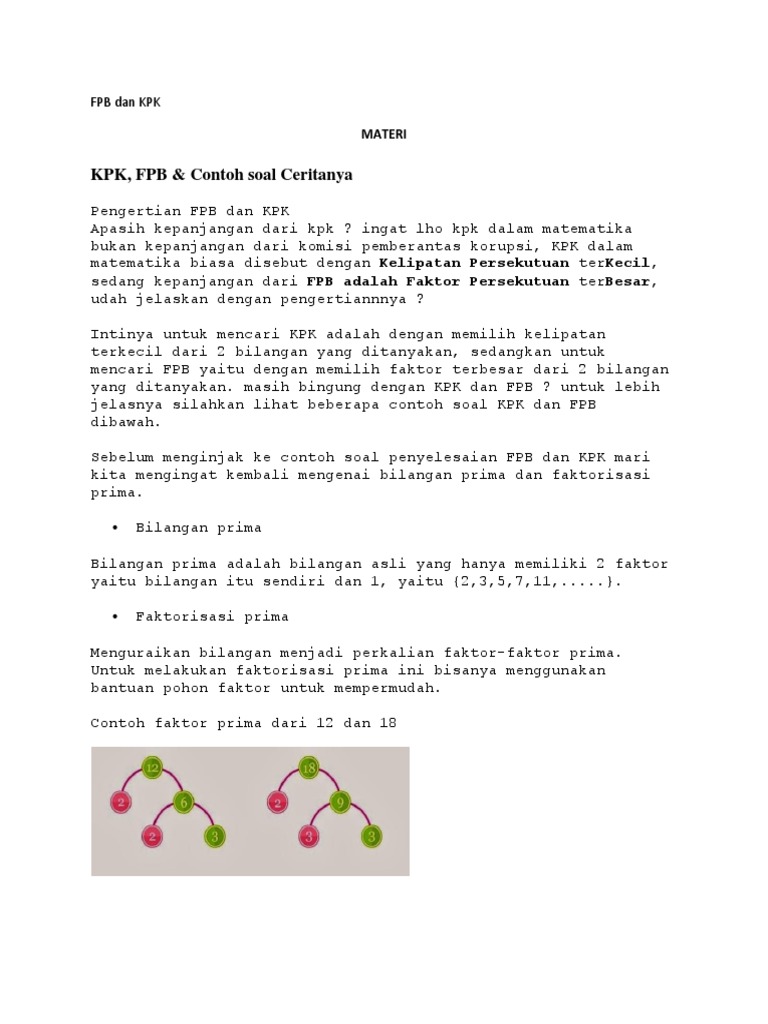Kpk Dari 5 Dan 7 Adalah 35 2 Kelipatan 8 8 16 24 32 40 48 56 64 72 80 Jadi Fpb Dari 24 Dan 30 Adalah 6 6 Pdf Document