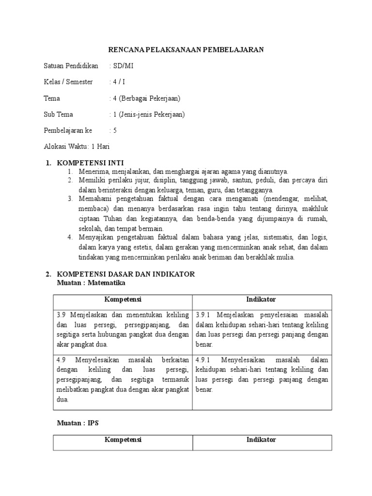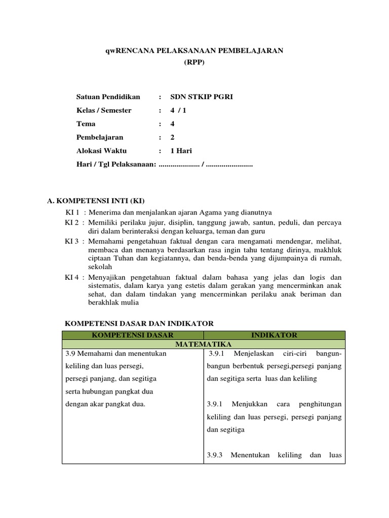 Contoh Rpp Materi Persegi Persegi Panjang Dan Segitiga Sd Kelas Iv Semester Genap Tips Belajar Matematika