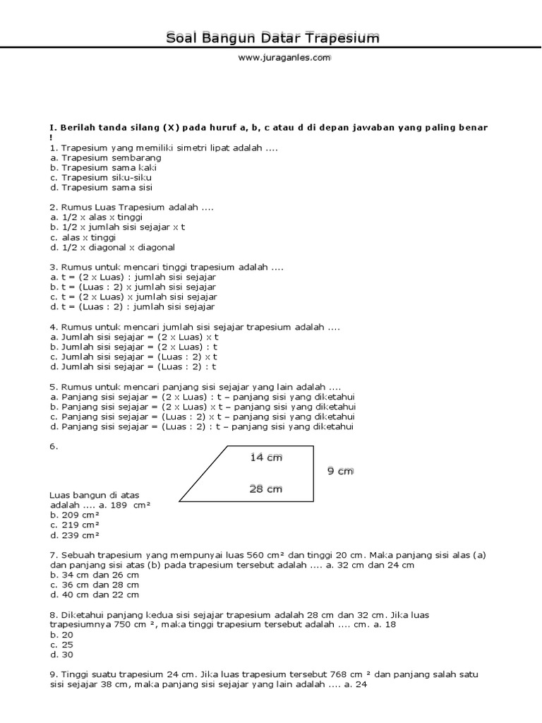 Wahana Ilmu Pengetahuan Dan Informasi Waipi Cara Menghitung Keliling Dan Luas Bidang Berbentuk Trapesium