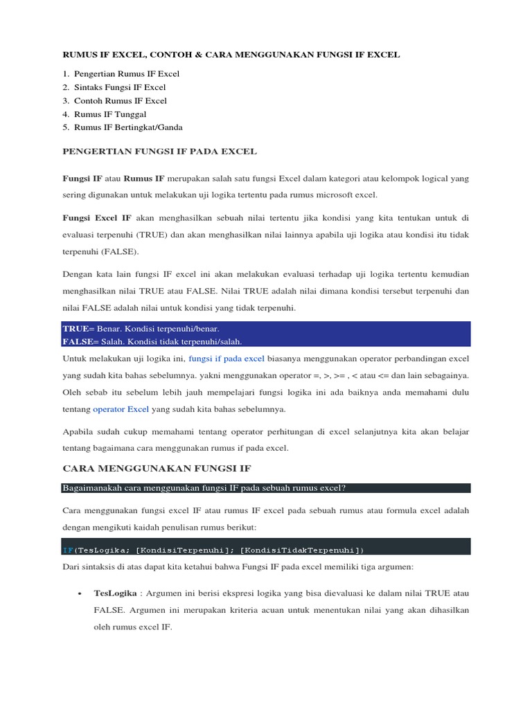 Rumus If Excel Lengkap 2 Kondisi 3 Kondisi 4 Kondisi Dan If Bersarang Beserta Contohnya Panduan Ms Office