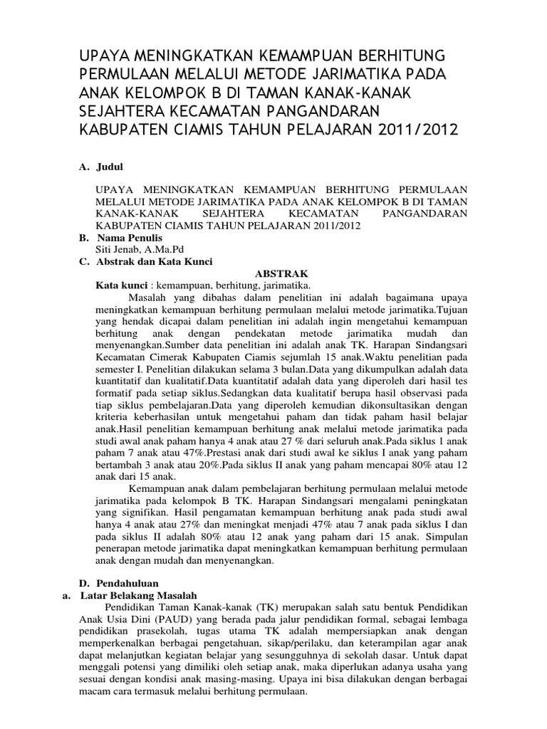 Meningkatkan Kemampuan Berhitung Perkalian Melalui Metode Jarimatika Siswa Kelas Ii Semester 2 Sdn 40 Ampenan Tahun Pelajaran 20152016