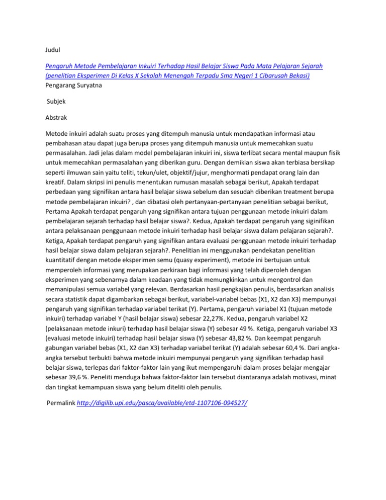Pengaruh Metode Pembelajaran Inkuiri Terhadap Aktifitas Berpikir Dan Keterampilan Siswa Tata Busana Jurnal Studi Guru Dan Pembelajaran