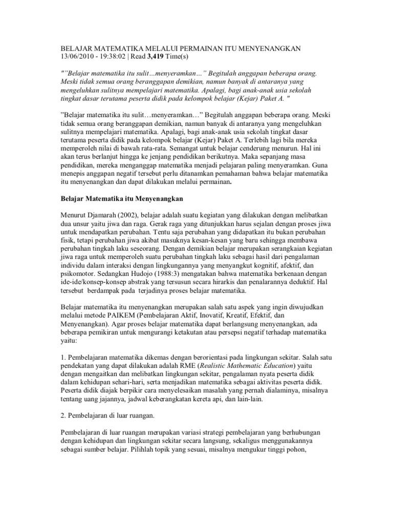 Doc Red0 Artikel Pembelajaran Matematika Yang Menyenangkan Program Studi Pendidikan Matematika Erni Panca Academia Edu