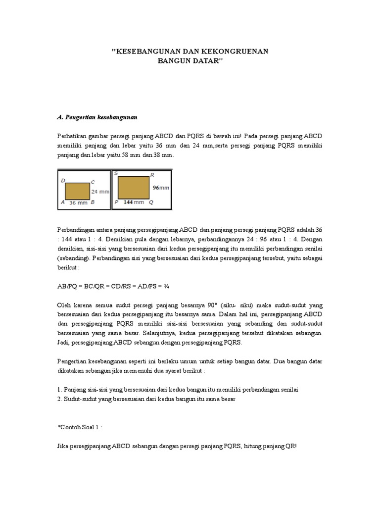Bab Kesebangunan Dan Kekongruenan Bangun Datar A Kesebangunan Bangun Datar B Kekongruenan Bangun Datar Pdf Download Gratis