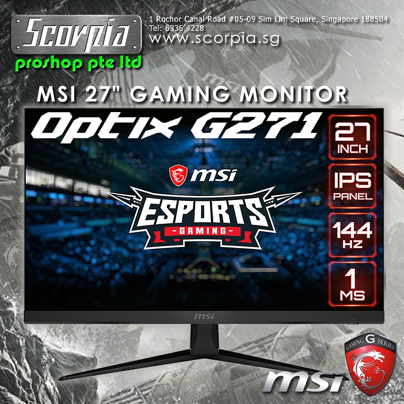 It features a 27 ips panel fhd high resolution 144hz refresh rate as well as amd freesync and 1ms response times. Play at the peak of performance with the msi optix g271 esports gaming monitor.