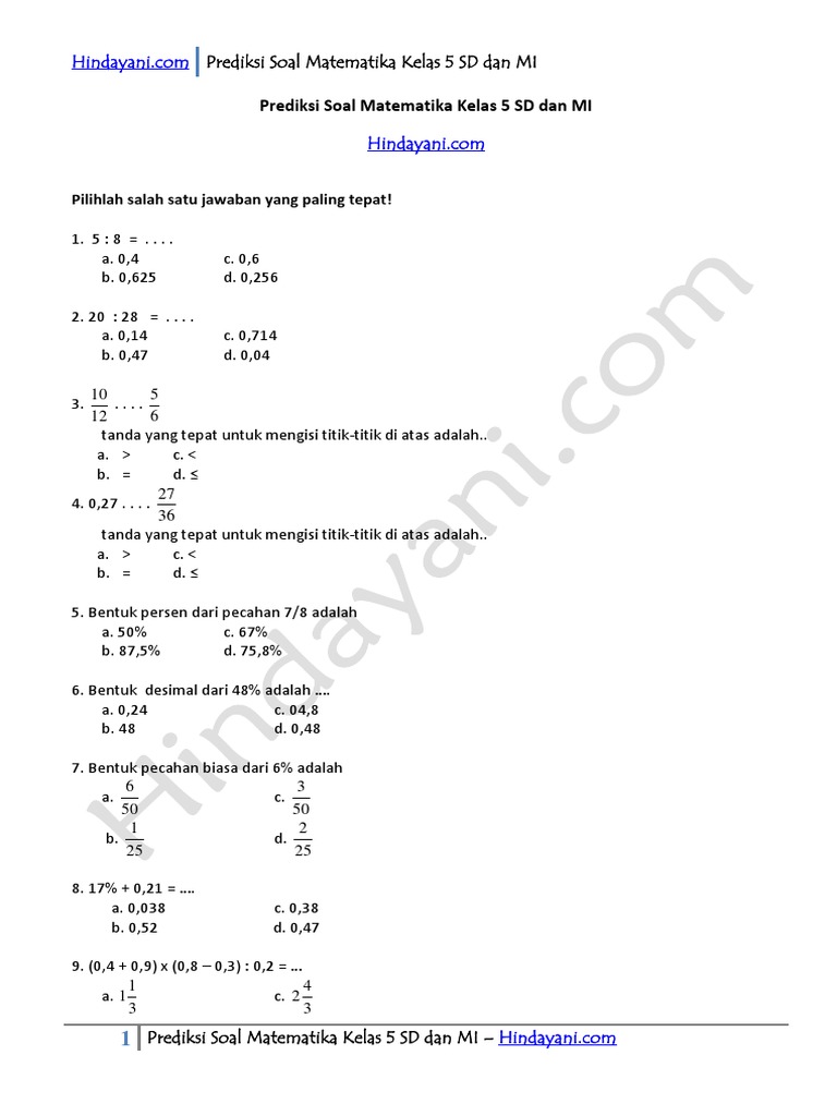 Soal Ulangan Harian Matematika Kelas 5 Kurikulum 2013 Sekolahdasar Net
