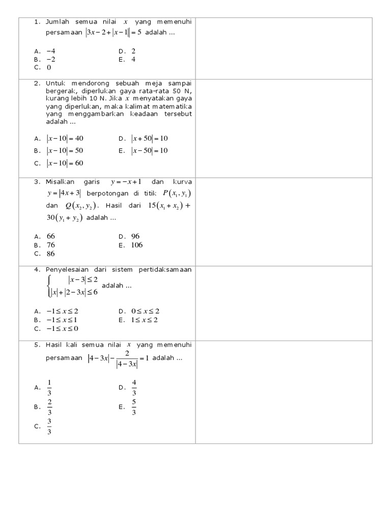 Bab 1 Persamaan Dan Pertidaksamaan Nilai Mutlak Linear Satu Variabel Pdf