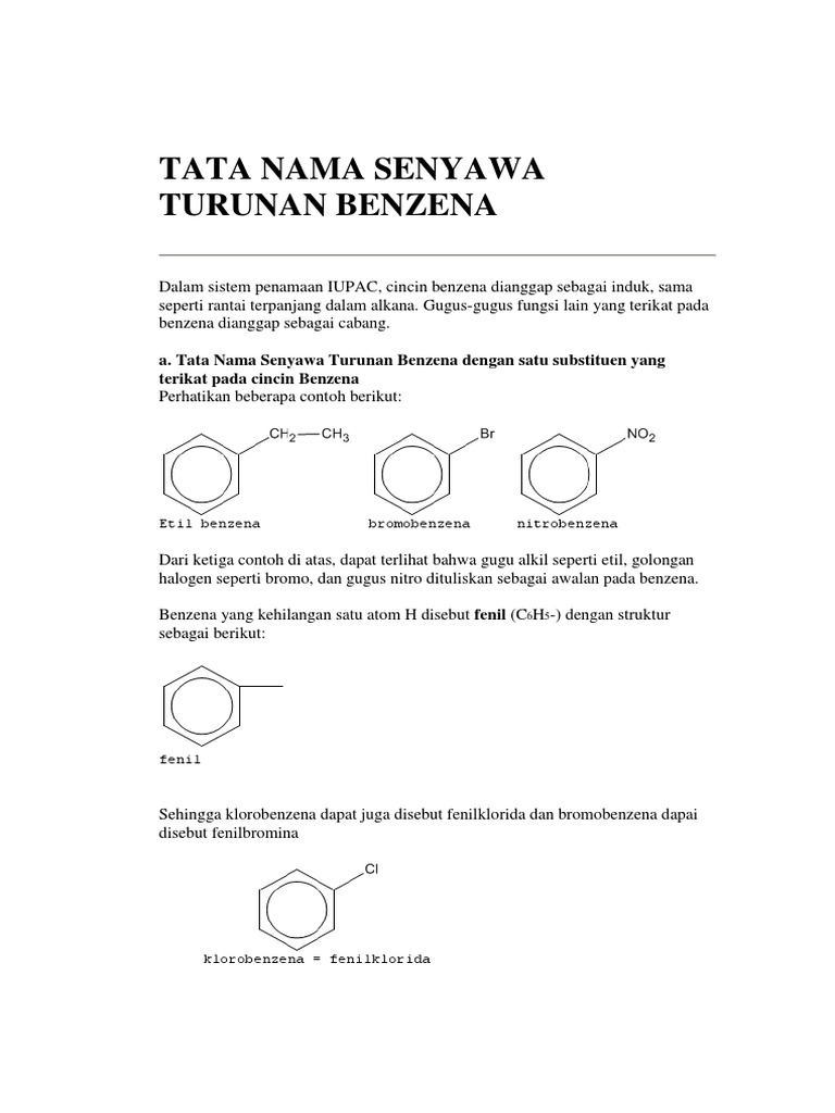 Benzena Senyawa Turunan Struktur Sifat Kegunaan Contoh Soal