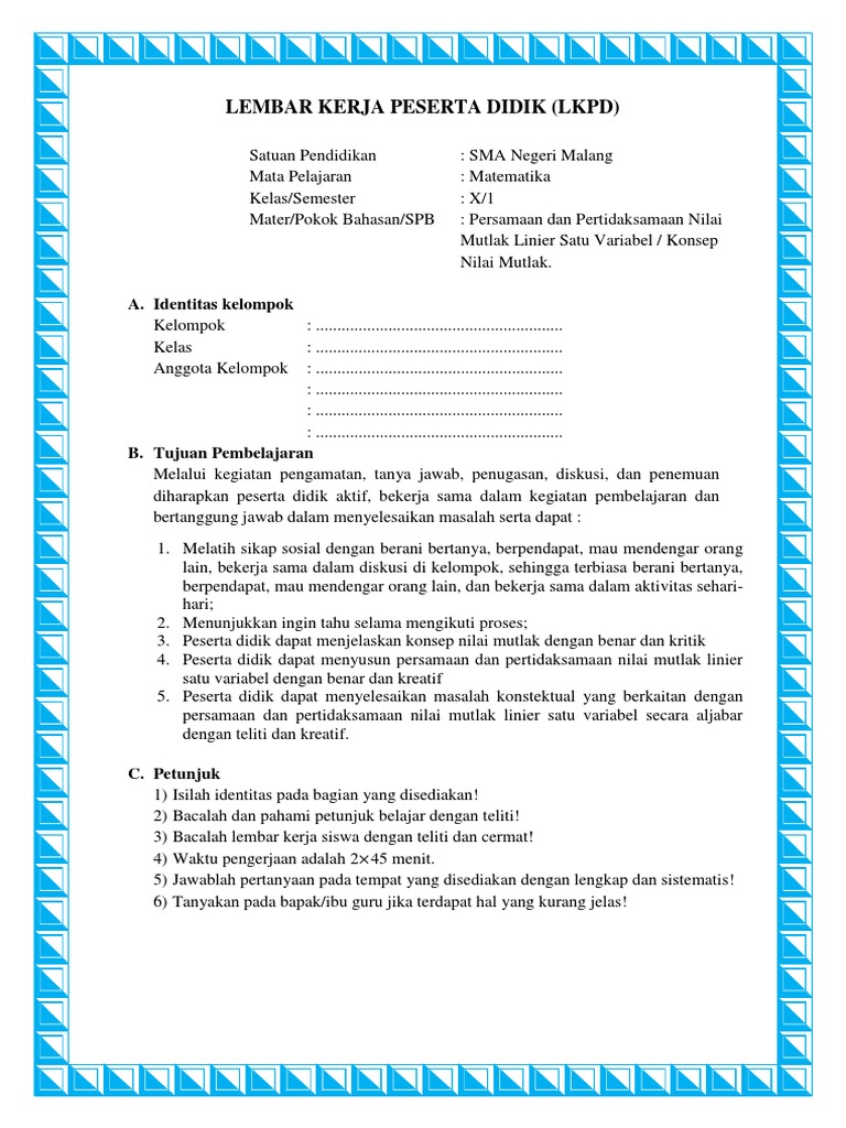Contoh Soal Pertidaksamaan Nilai Mutlak Dan Pembahasannya Kelas 10 Pdf Kumpulan Soal Pelajaran 1