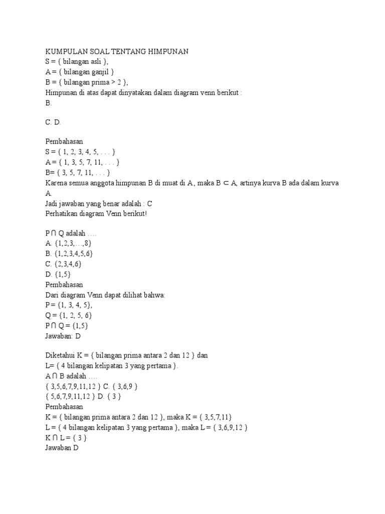 V Bilangan Genap Yang Kurang Dari 15 T Bilangan Kelipatan 3 Yang Kurang Dari 15 A Tentukan Brainly Co Id
