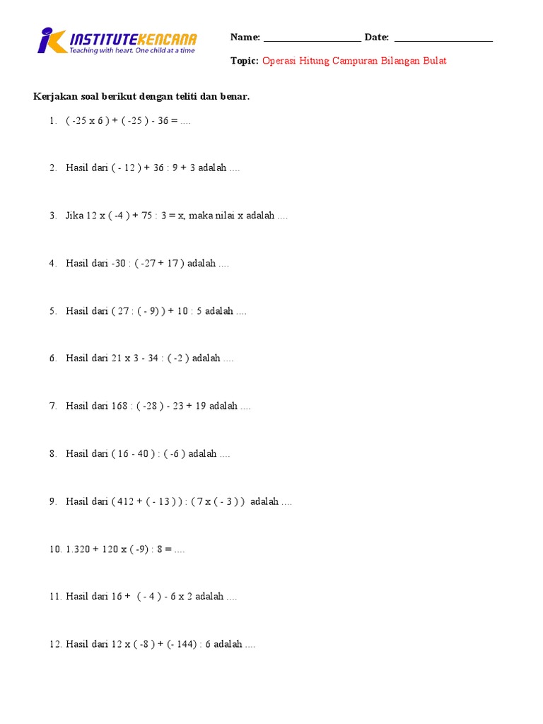 Latihan 10 Ayo Kerjakan Soal Soal Operasi Hitung Campuran Berikut Brainly Co Id