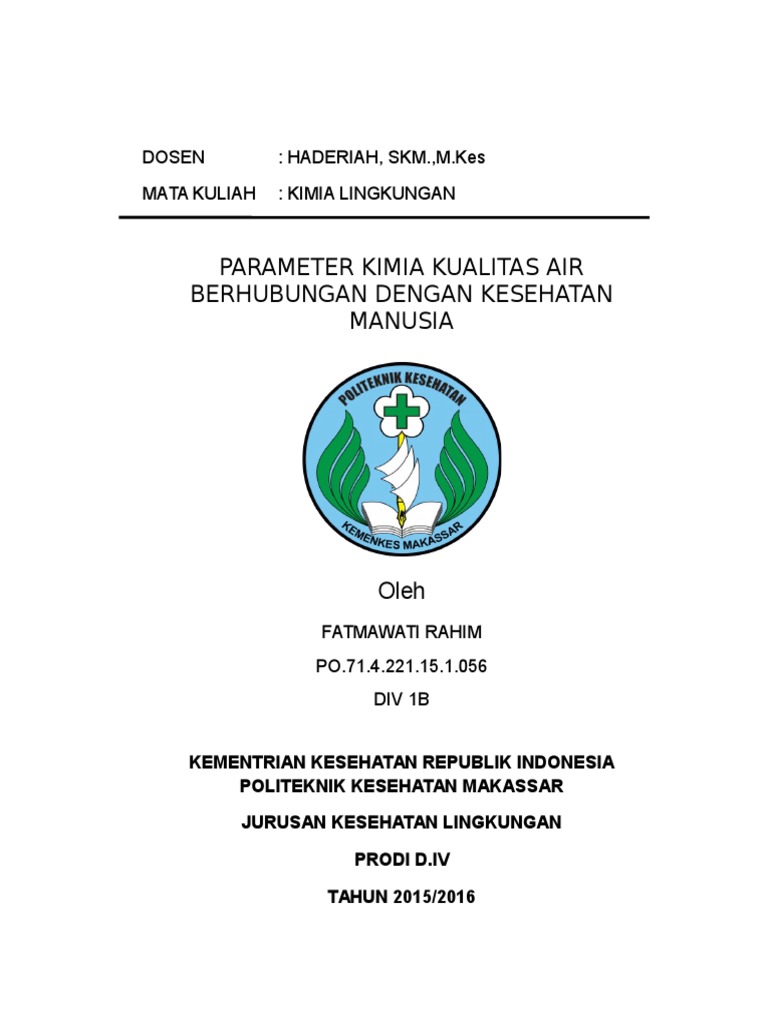 Analisis Kualitas Air Berdasarkan Parameter Kimia Cover Pdfjudul Skripsi Analisis Kualitas Air Berdasarkan Pdf Document