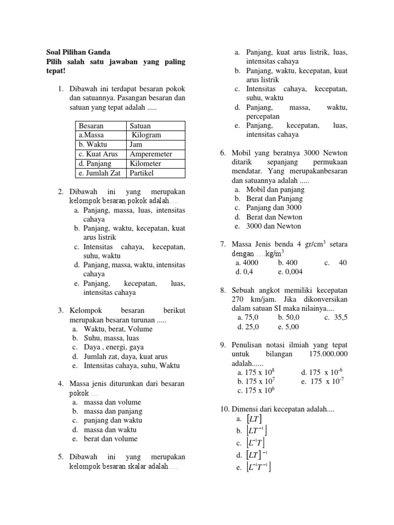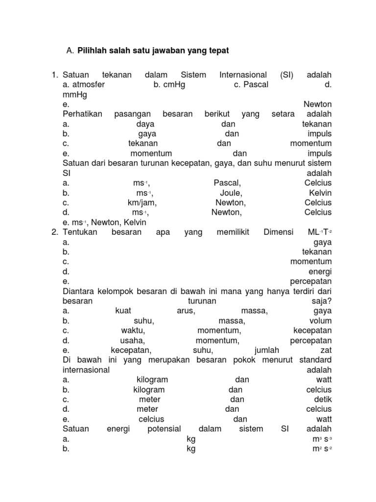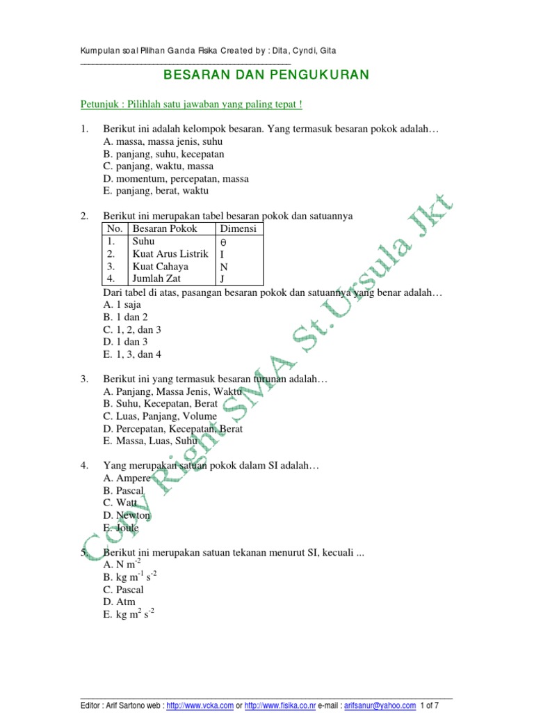 Doc Oal Soal Pengukuran Besaran Dan Satuan Plus Kunci Jawaban Chul Reffaydệrs Academia Edu