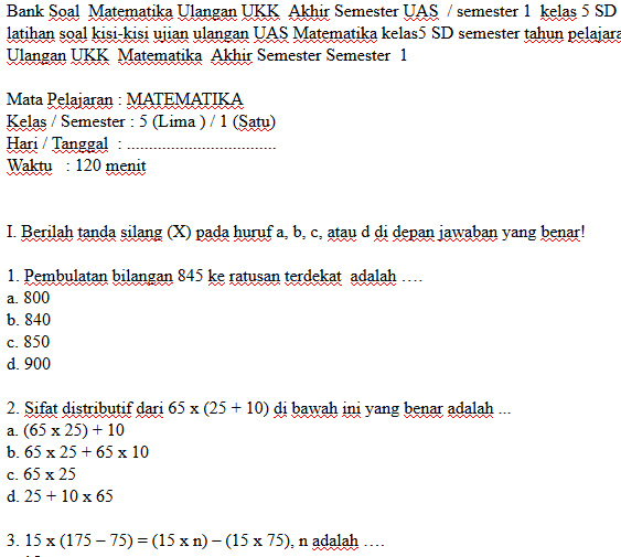 Soal Ulangan Uts Matematika Ktsp Kelas 5 Semester 1 Ganjil Terbaru 2016 Matematika Matematika Kelas 5