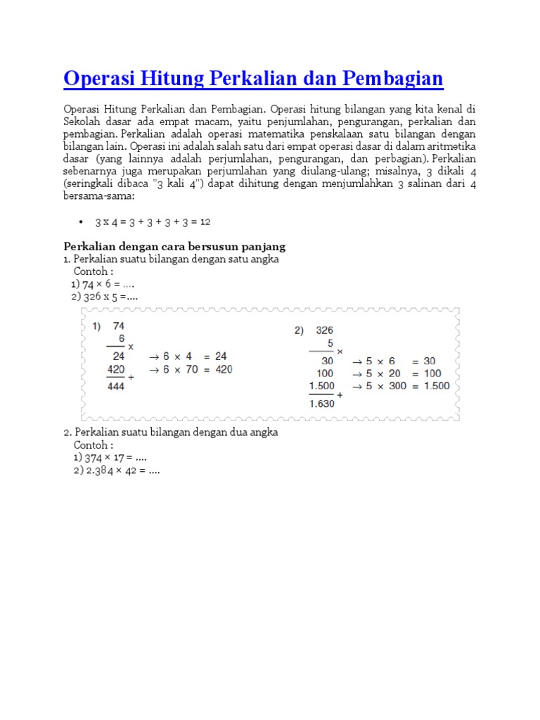 Operasi Hitung Campuran Penjumlahan Pengurangan Perkalian Dan Pembagian Mempelajari Melakukan Operasi Pdf Document