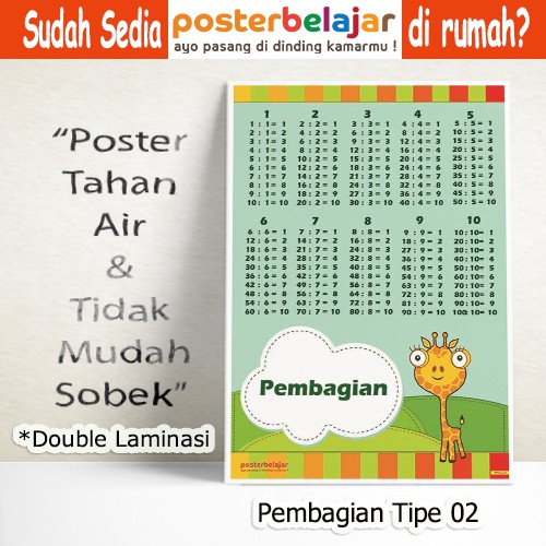 Poster Matematika Pembagian Untuk Belajar Anak Sd Tipe 04 Double Laminasi Shopee Indonesia