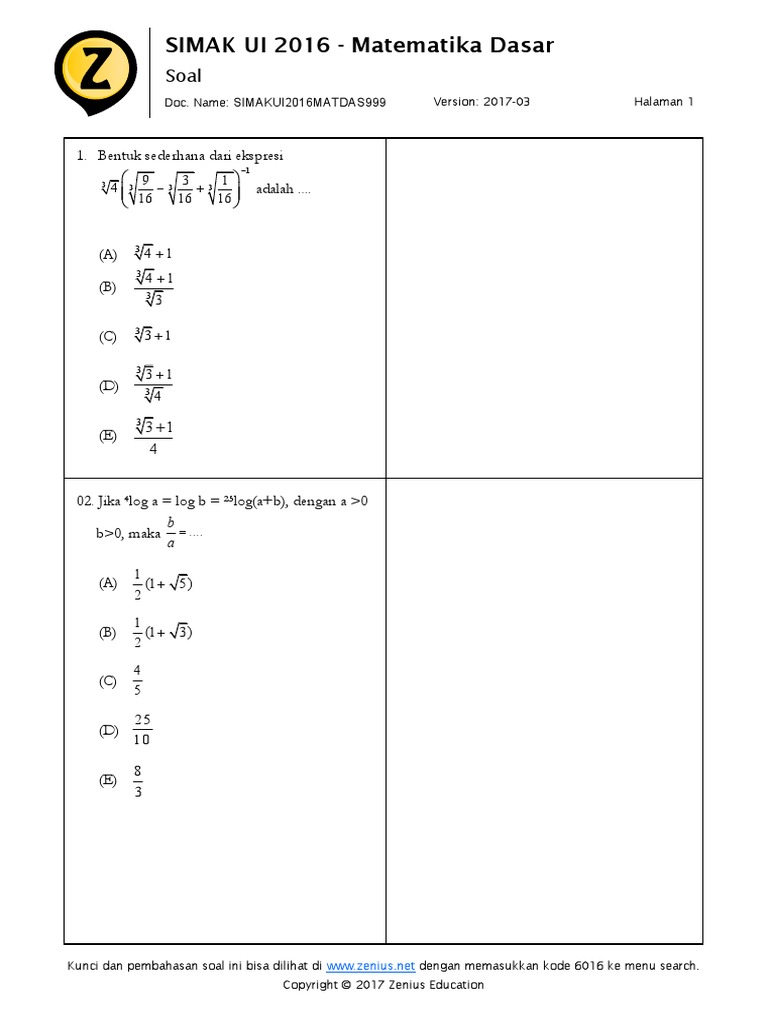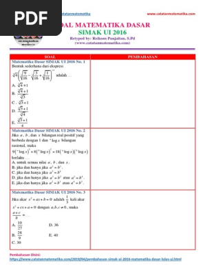 Simakui2016matdas999 Pdf Simak Ui 2016 Matematika Dasar Soal Doc Name Version 2017 03 Halaman 1 1 Bentuk Sederhana Dari Ekspresi 3 9 3 3 1 4 3 3 16 16 Course Hero