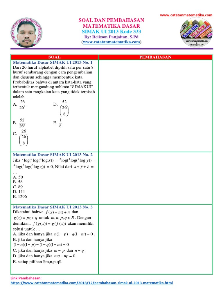 Mahasiswi Biasa على تويتر Thread Pembahasan Simak Ui 2019 Matematika Ipa Kode Soal 311