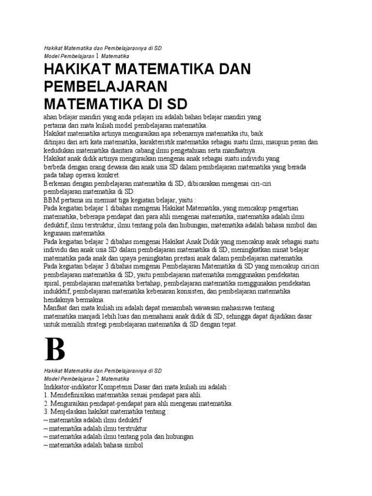 Jual Pembelajaran Matematika Sd Gatot Muhsetyo Universitas Terbuka Kab Magetan Al Rushd Bookstore Tokopedia