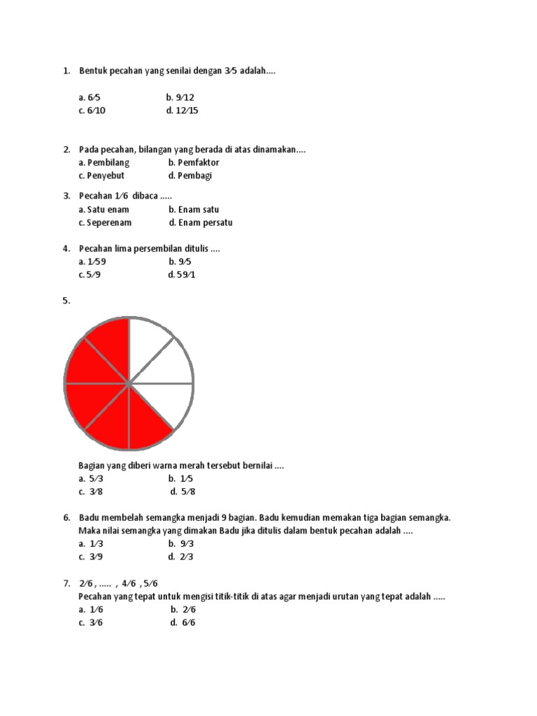 Kisi Kisi Soal Pretest Matematika 6 1 Menjelaskan Arti Pecahan Dan Urutannya Pdf Free Download