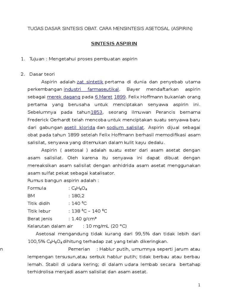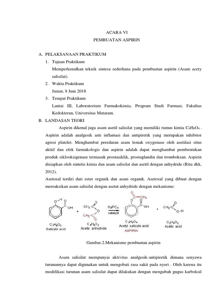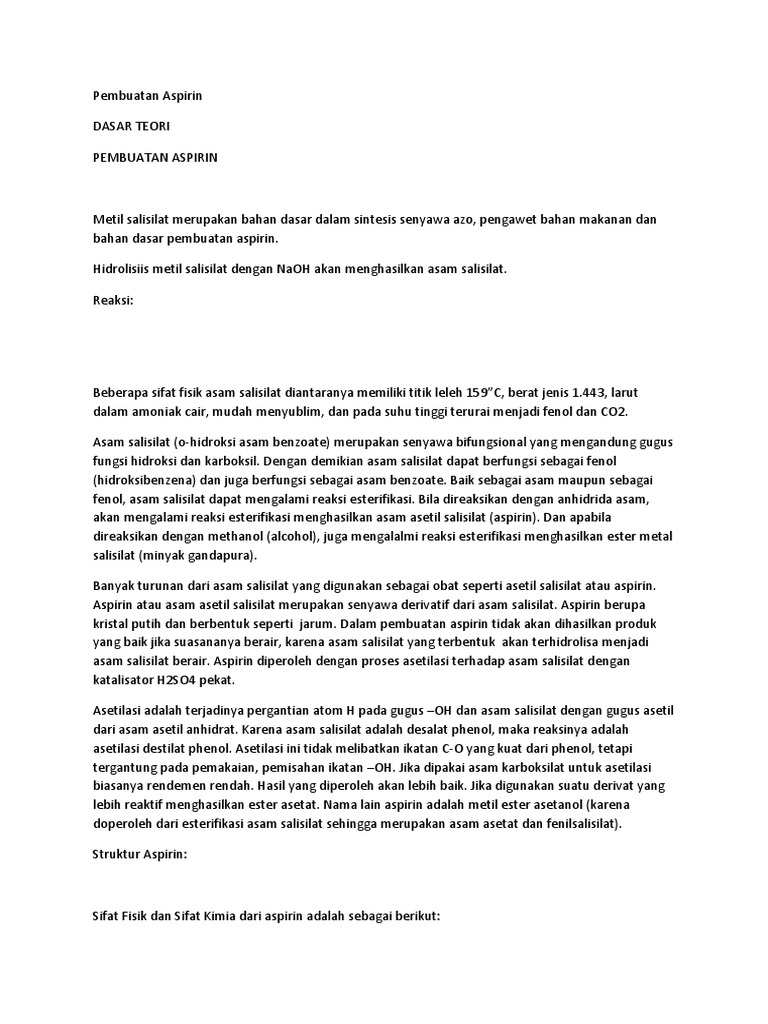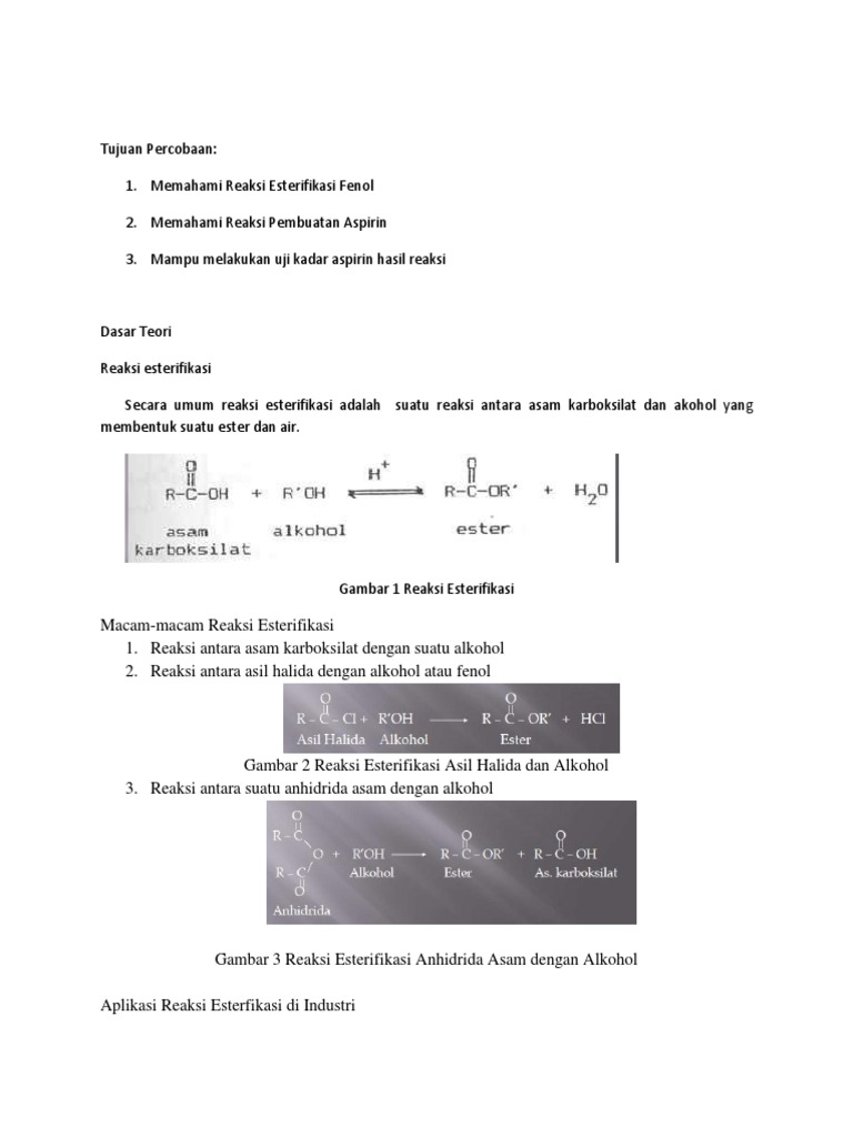 Lapko7 Adit Dkk Doc Esterifikasi Fenol Sintesis Aspirin I Tujuan Percobaan Menentukan Persen Rendemen Aspirin Hasil Sintesis Menentukan Kadar Aspirin Course Hero
