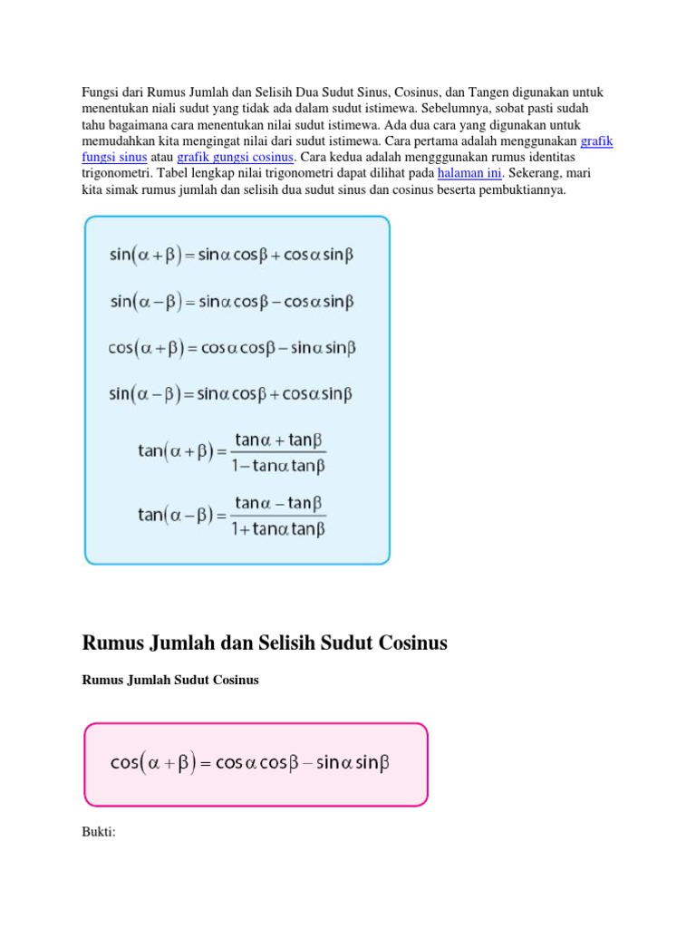 Rumus Jumlah Dan Selisih Sudut Sin Cos Dan Tan Idschool