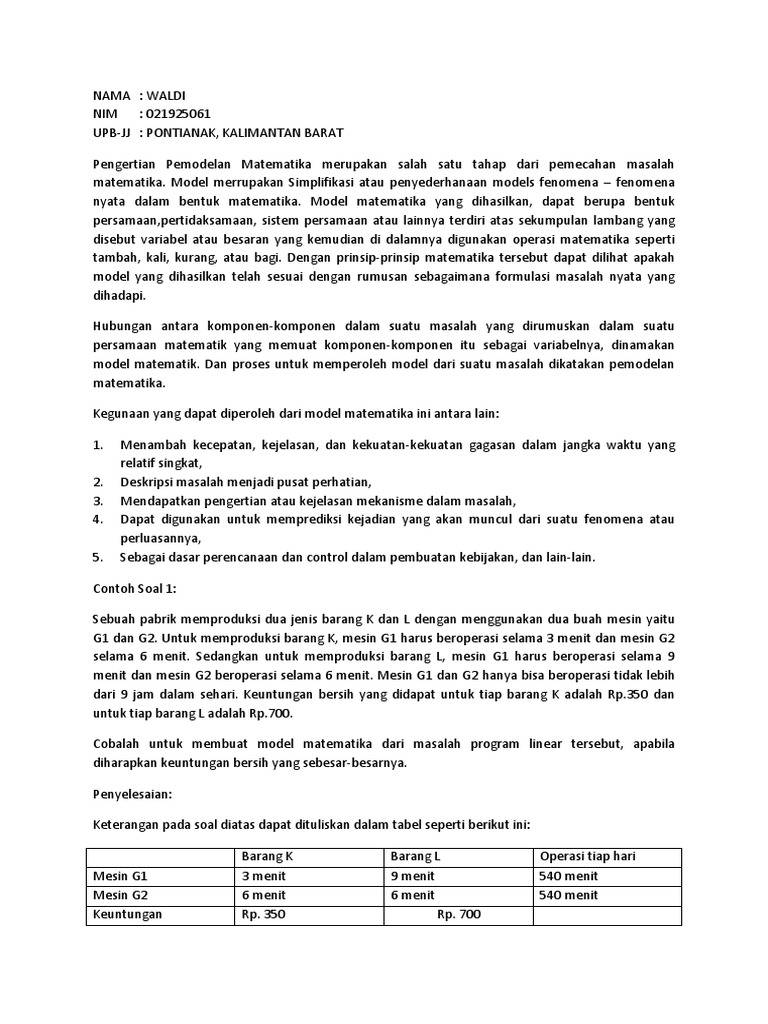 Contoh Formulasi Dan Pemodelan Matematika Spk 4ka04 11108588 Rangga Septian P It S My Second Home Happy Surfing N N