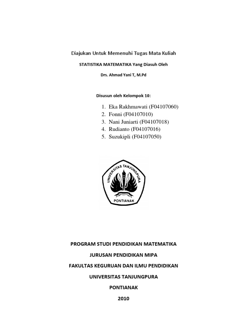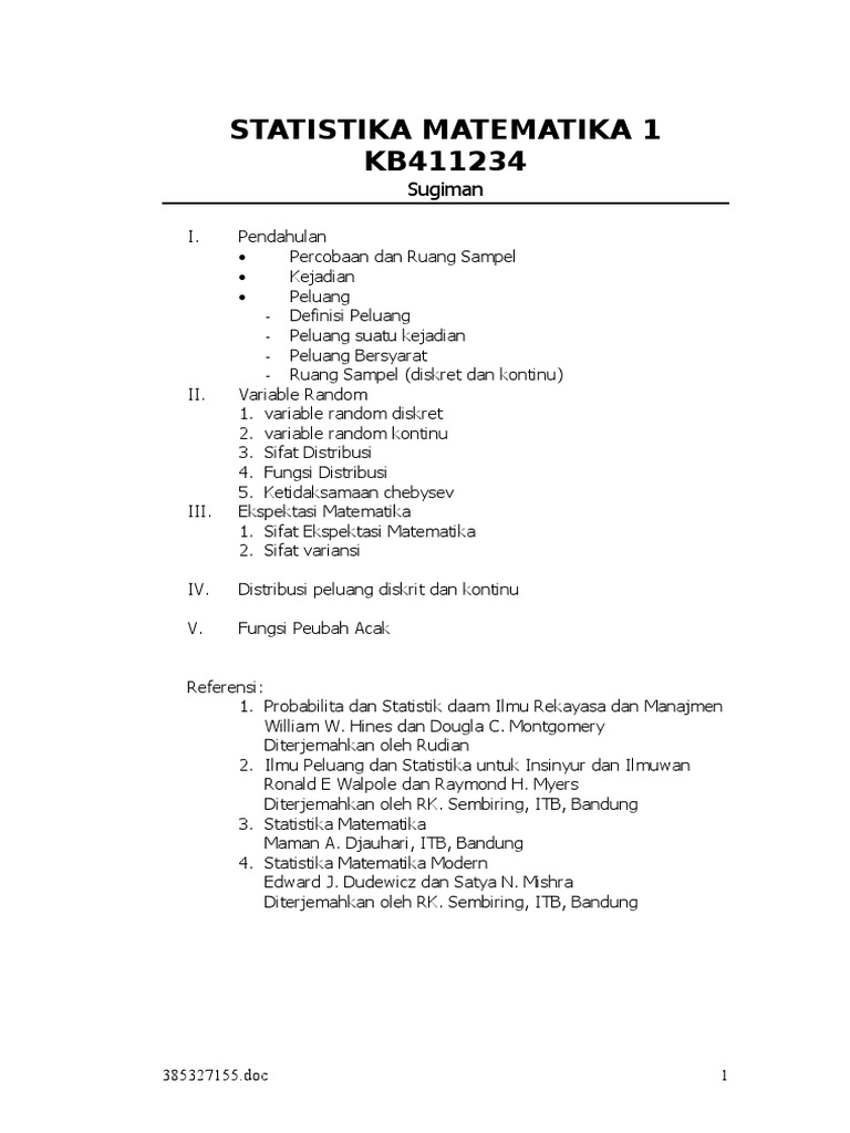 Lokasi Materi Pokok Pengantar Statistika Matematika Ii Stat 4311 3 Sks Modul 1 5 Dan Modul 6 9