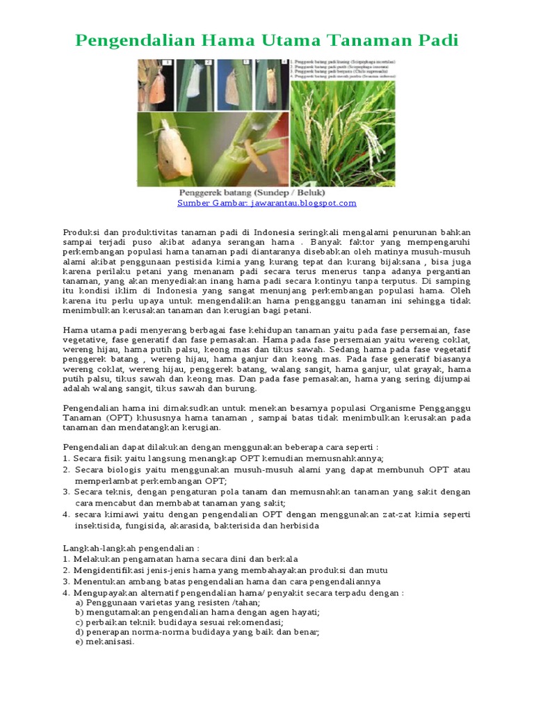 Atasi Serangan Hama Padi Gunakan Obat Kimia Hingga Jaga Sanitasi