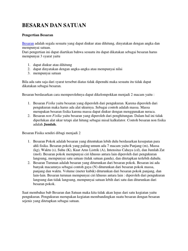 Besaran Pengertian Besaran Satuan Pengukuran Dan Contohnya Teks Co Id