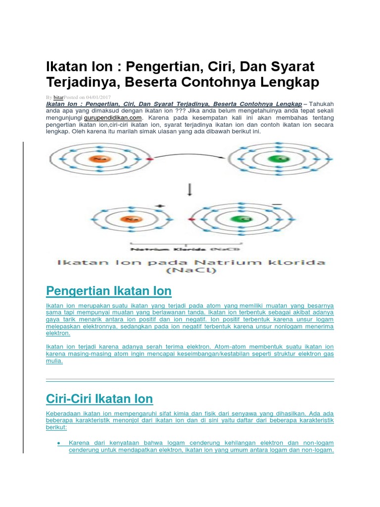 Pengertian Ikatan Ion Ikatan Kovalen Dan Ikatan Logam Lengkap Materisiana