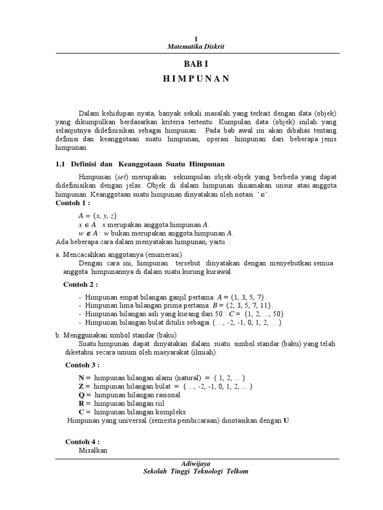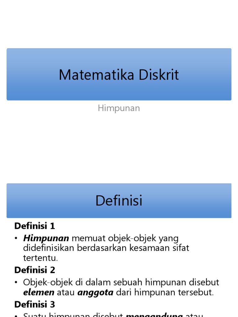 Himpunan Matematika Diskrit Matematika Diskrit1 Himpunan Definisi Notasi Operasi Operasi Dasar Sifat Sifat Latihan