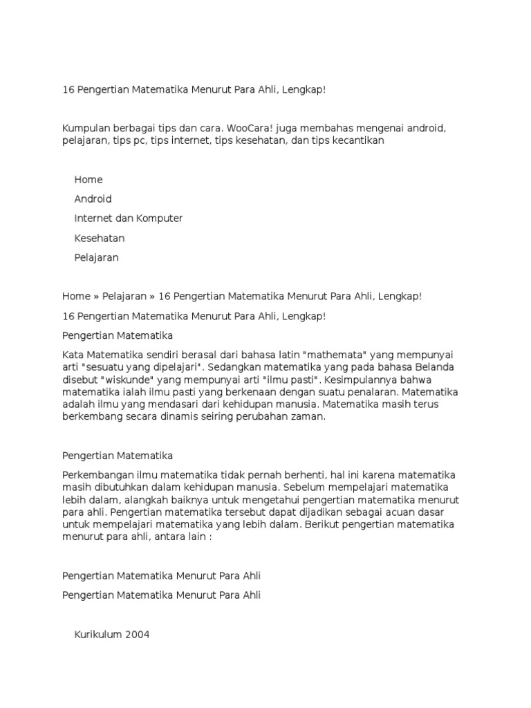 Doc Penertian Matematika Menurut Para Ahli Ampi Anto Academia Edu