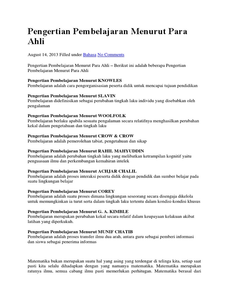 Pengertian Pembelajaran Menurut Para Ahli