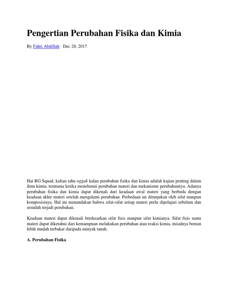 Perubahan Fisika Perubahan Kimia Perubahan Fisika Perubahan Kimia Tidak Terbentuk At Yang Jenisnya Baru Reversible Tidak Terjadi Reaksi Kimia Terbentuk Zat Yang Jenisnya Pdf Document