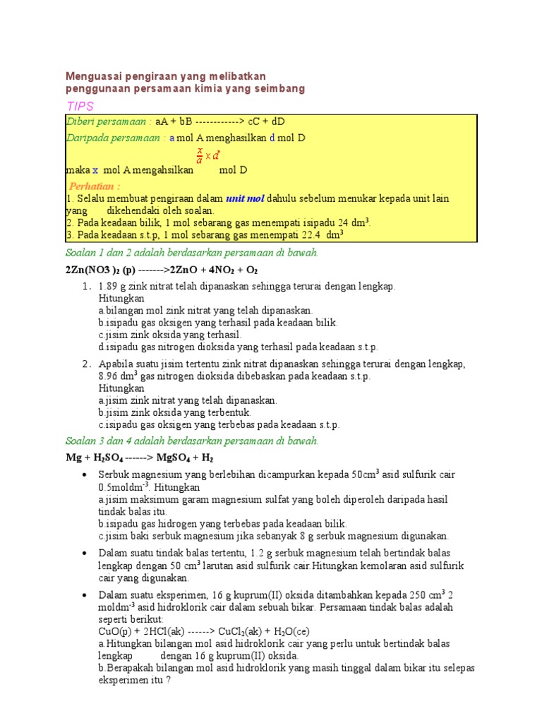Tips Peperiksaan Kimia Spm Pemakahan Melibatkan Pengiraan Mol Cikgu Siti Faridah