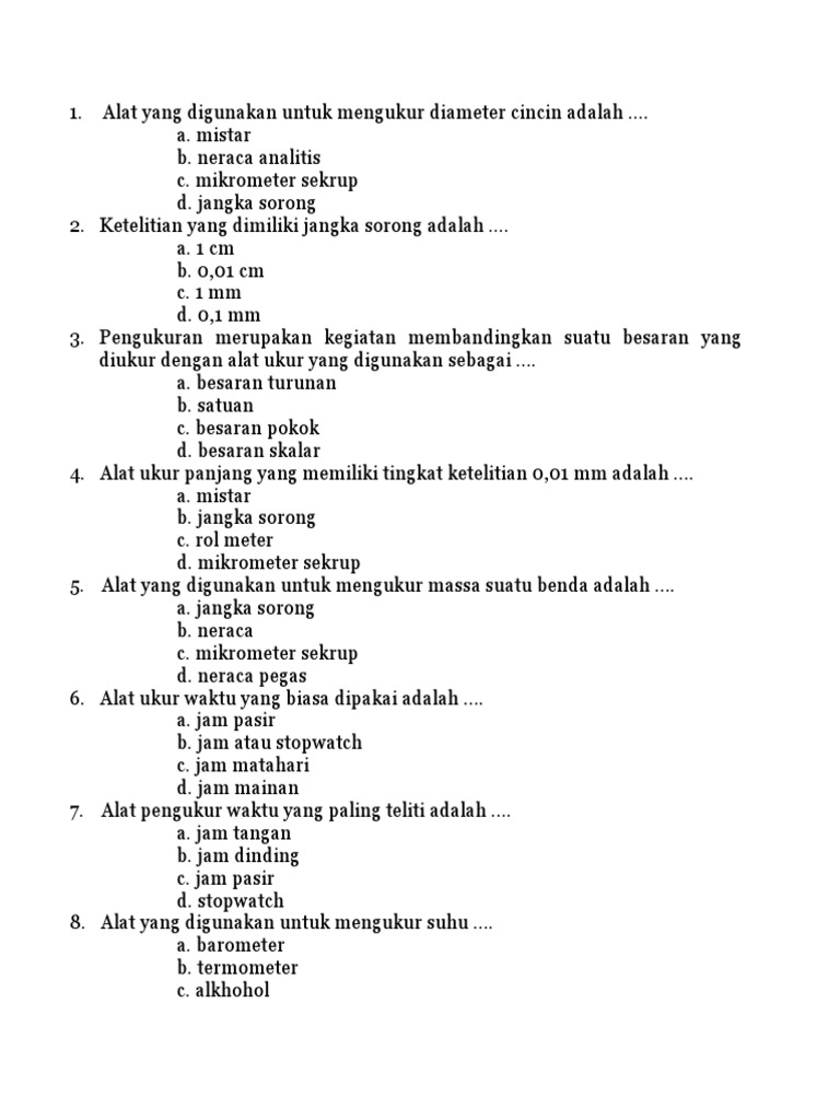Soal Fisika Smp Kelas 7 Vii Tentang Pengukuran Dan Alat Ukurnya