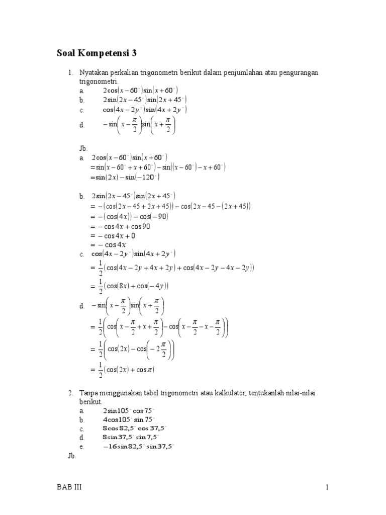 Tangent cosecan secan dan cotangent bisa digunakan bersama sama baik dengan penjumlahan atau pengurangan maupun perkalian. Selain itu kamu juga akan mendapatkan latihan soal interaktif dalam 3 tingkat kesulitan mudah sedang sukar. Blog koma materi rumus perkalian penjumlahan dan pengurangan trigonometri merupakan kelanjutan dari materi rumus trigonometri untuk jumlah dan selisih dua sudutsilahkan juga baca materi perbandingan trigonometri sudut sudut berelasirumus perkalian penjumlahan dan pengurangan trigonometri ini biasanya akan banyak kita gunakan pada materi integral dan limit.
