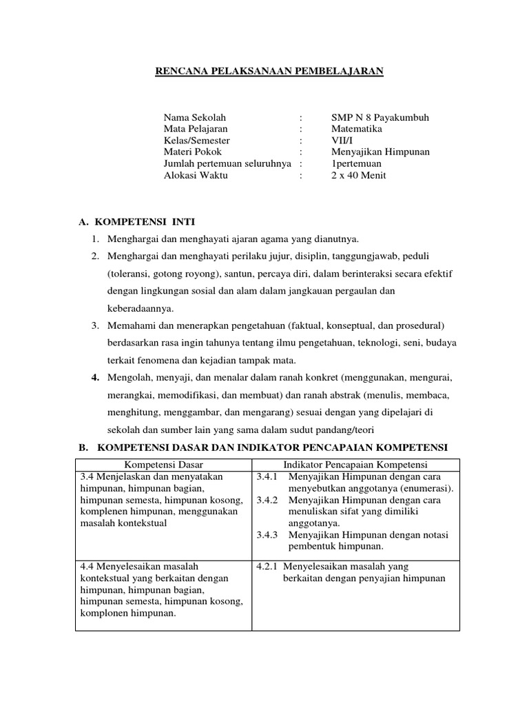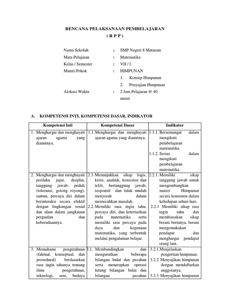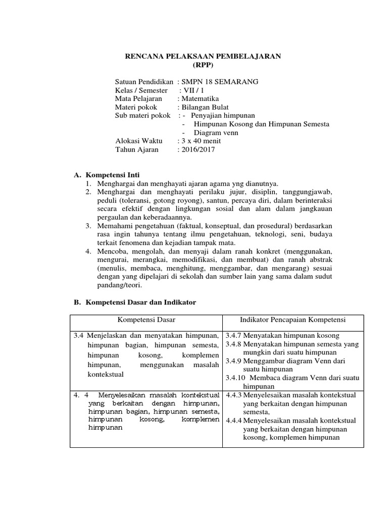 Doc Contoh Kisi Kisi Ulangan Harian Materi Himpunan Smp Kelas 7 Egis Fernanda Academia Edu